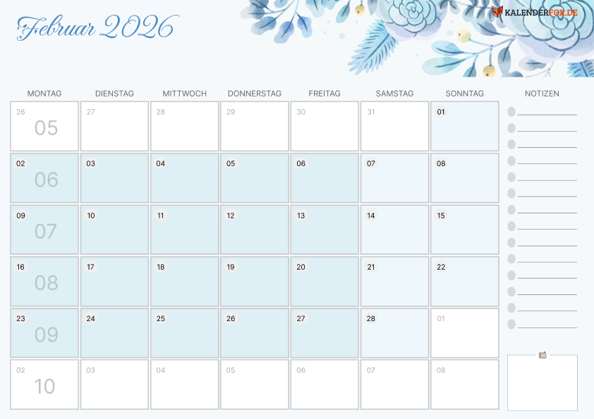 Aesthetic Kalender 2026 Februar