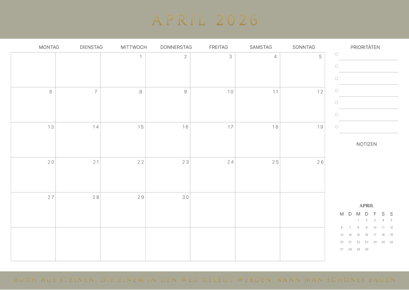 Kalender 2026 April mit Zitaten