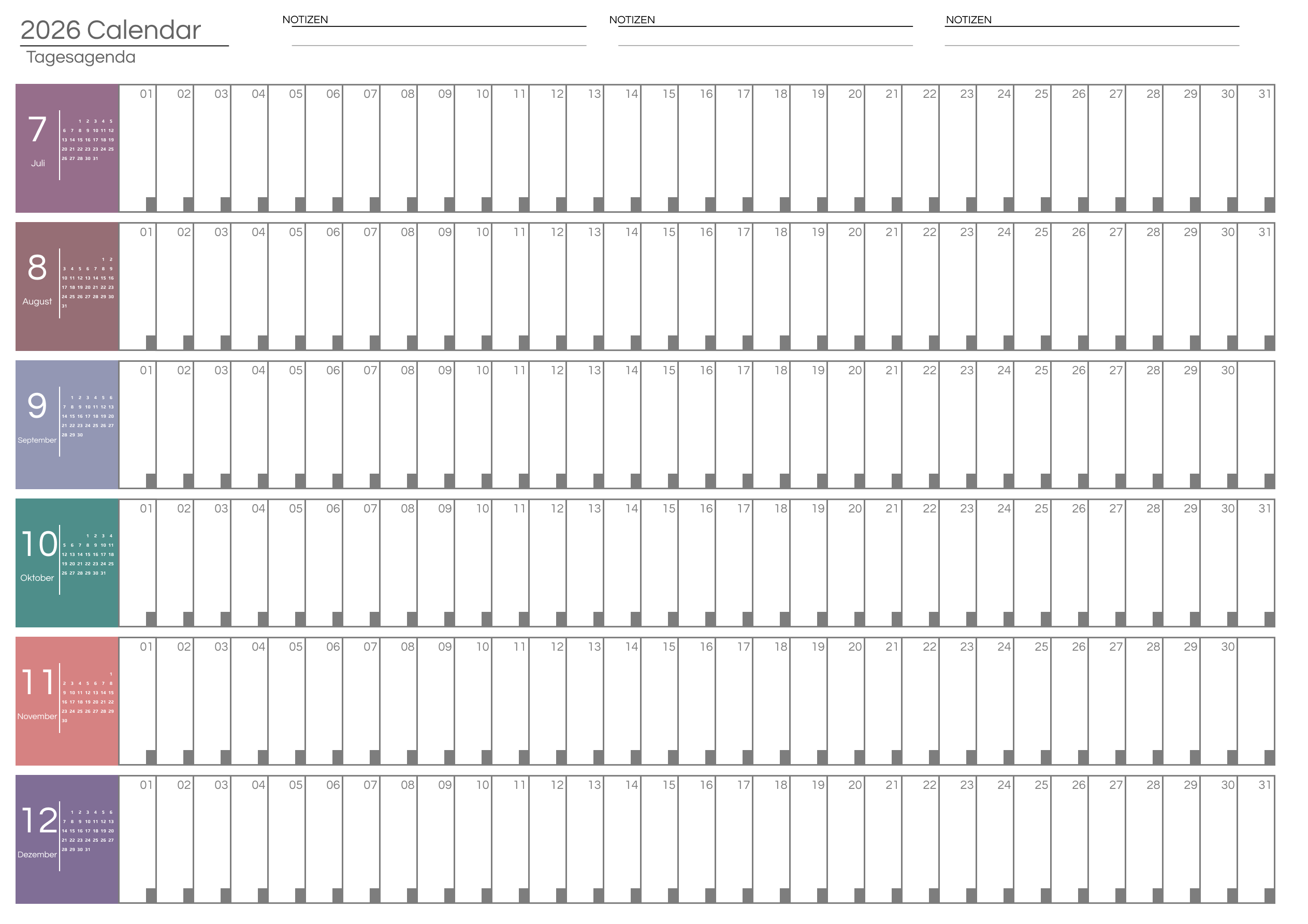 Wenn Sie einen Kalender mit zusätzlichem Bereich für Monatsnotizen benötigen, können Sie ihn hier herunterladen.
