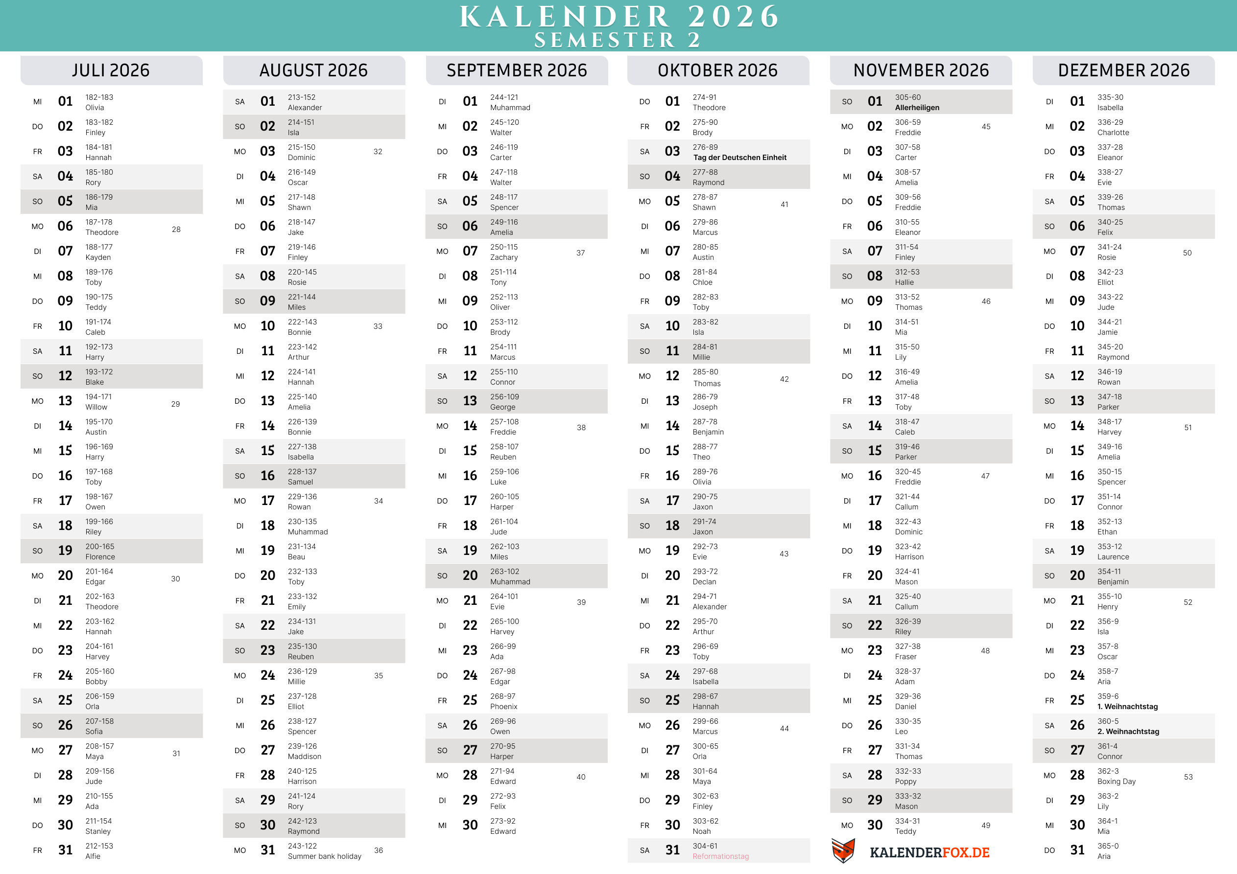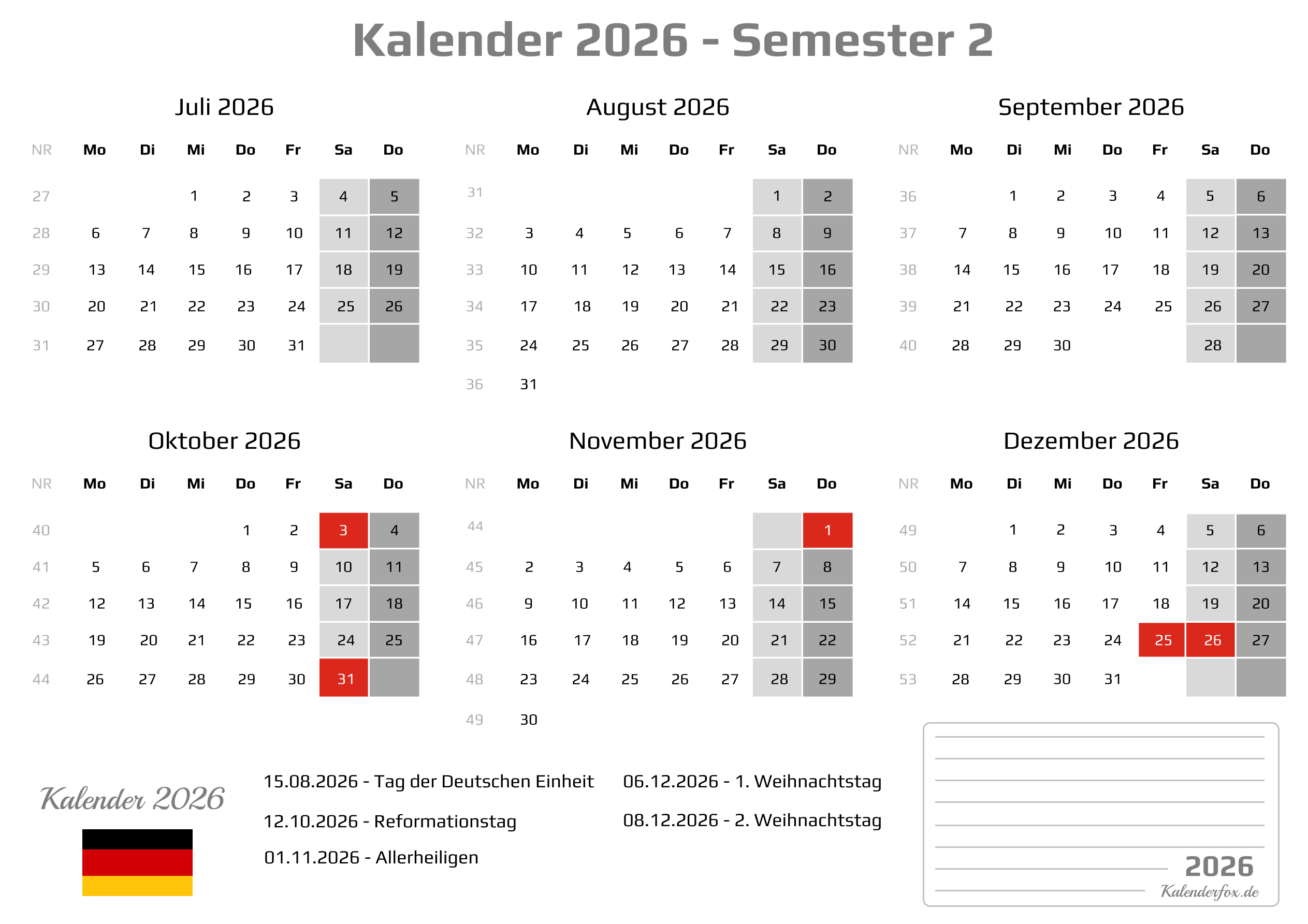Kalender 2026 Semester 2